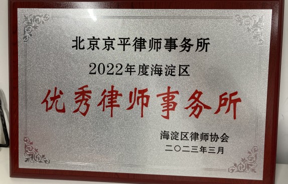 北京京平律師事務所榮獲2022年度海淀區“優秀律師事務所”稱號