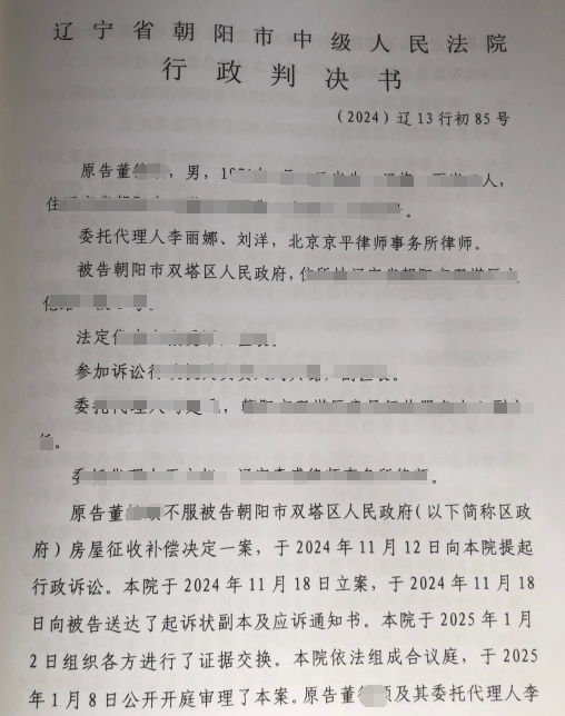 原告董某某在雙塔區凌鳳街道八寶村有繼承的兩處有證房屋。2022年11月25日,區政府發布征收土地啟動公告,其房屋在征收